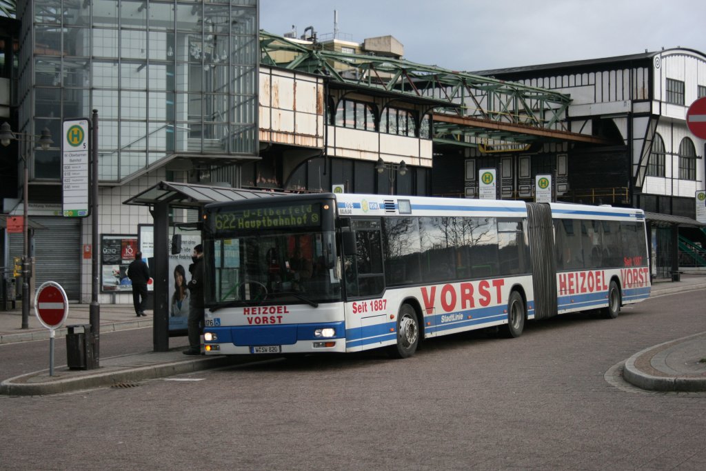 WSW 0176 (W SW 820) mit Werbung für Heizöl Vorst am 27.12.2009 vor dem Bf Wuppertal Oberbarmen.