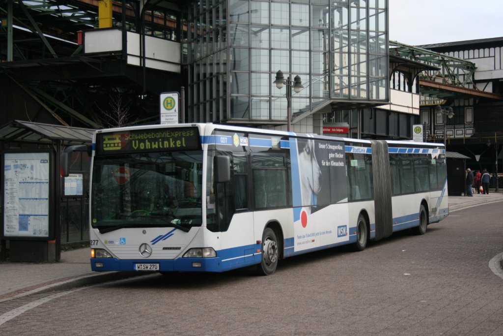 WSW 0277 (W SW 270) mit dem Schwebebahn Express nach Vohwinkel am 27.12.2009 in Oberbarmen.