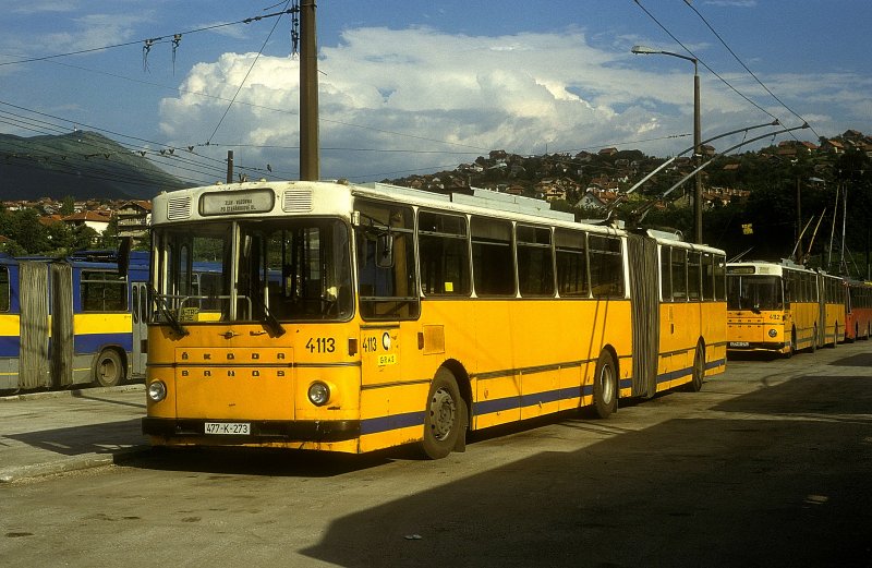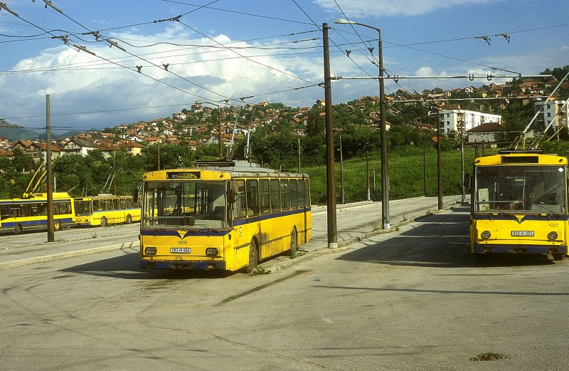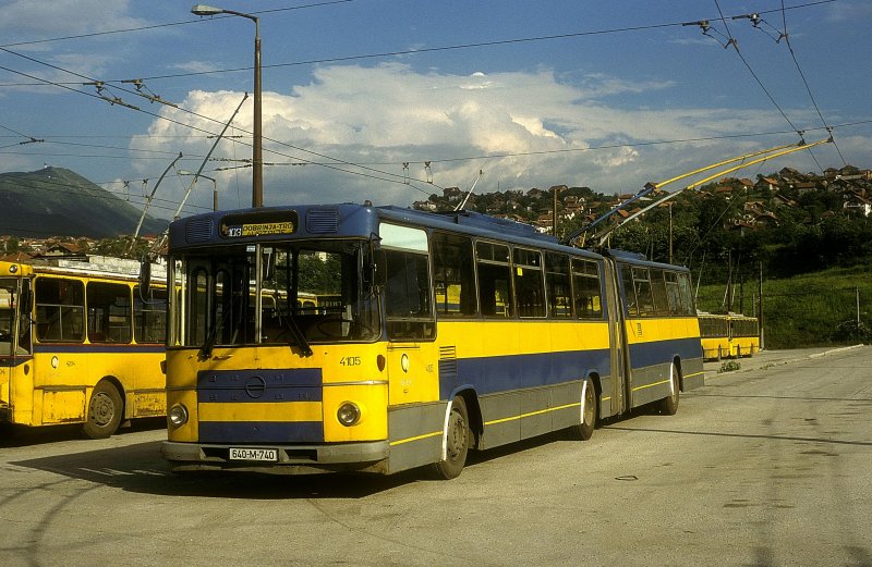 Noch mit Solinger Reklame ist der Obus 4140 im Sommer 2005 in Sarajevo unterwegs. Bei ihm handelt es sich um den ehemaligen Solinger Wagen 21, der im Januar 2004 nach Sarajevo abgegeben wurde. Horst Lüdicke