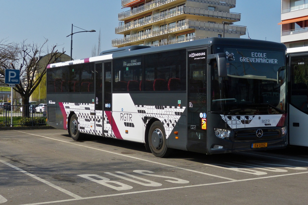 EW 1092, Mercedes Benz Intouro von Emile Weber, steht in Grevenmacher auf dem Busparkplatz, tut heute Dienst als Schülertransport. 03.2022 De Rond Hans und Jeanny