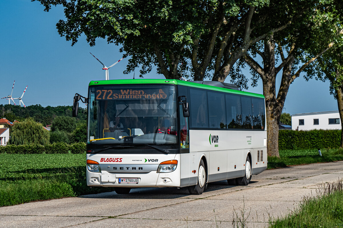 Von 03.02.2024 bis 12.02.2024 kam es auf der bahnstrecke zwischen Erzherzog-Karl-Straße und Raasdorf zu Baustellen. In diesem zeitraum wurde ein Schienersatzverkeher eingeführt. Am 7.2.2024 pendelten zwei Setra S 415 LE der Firma Blaguss zwischen Raasdorf und EhKStr hin und her. Hier zu sehen ist W 4450 LO als SV910 richtung Erzherzog-Karl-Straße untewegs.