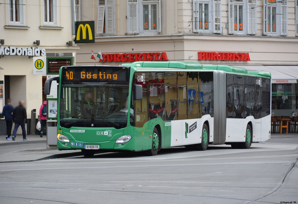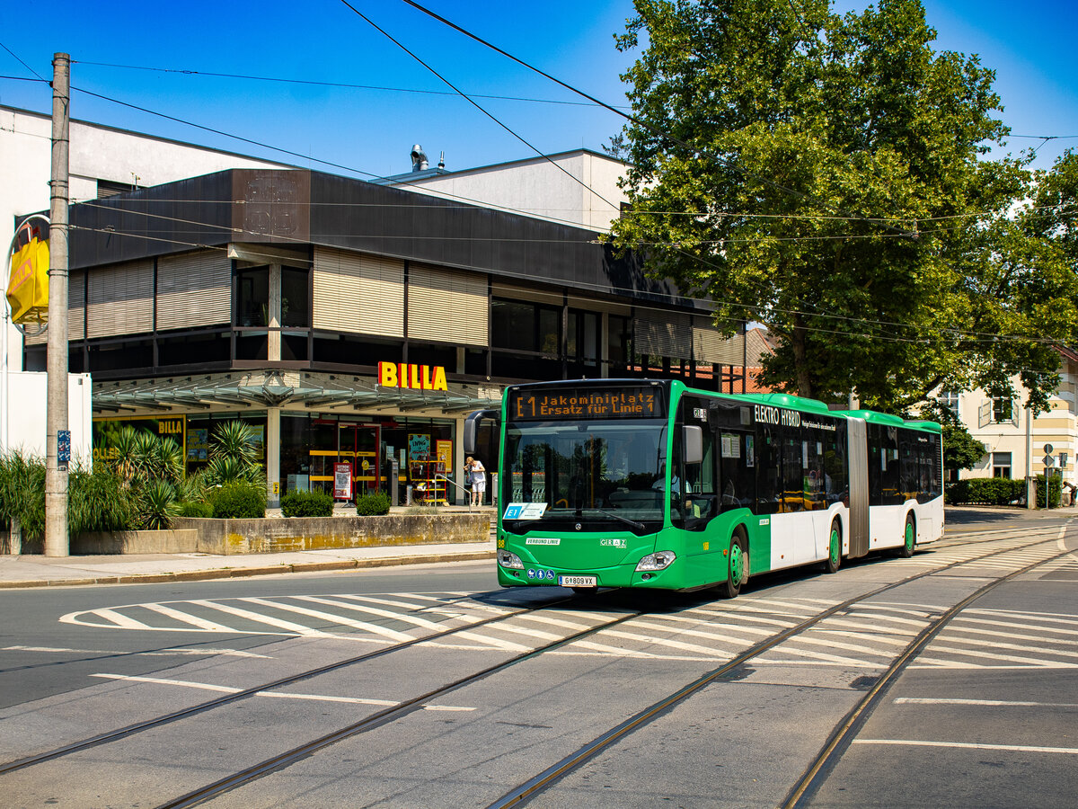Graz. Wagen 170 erreicht hier am 29.06.2025 den Griesplatz als Ersatzbus E6.