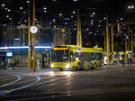 Graz. In der Nacht vom 04.01. auf den 05.01.2025, wartet Wagen 127 der Graz Linien abgestellt am Jakominiplatz als Linie 64E.