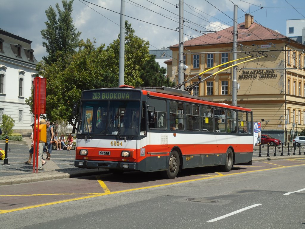 DPB Bratislava Nr. 6304 Skoda Trolleybus am 10. August 2010 Bratislava, Hodzovo Nam.