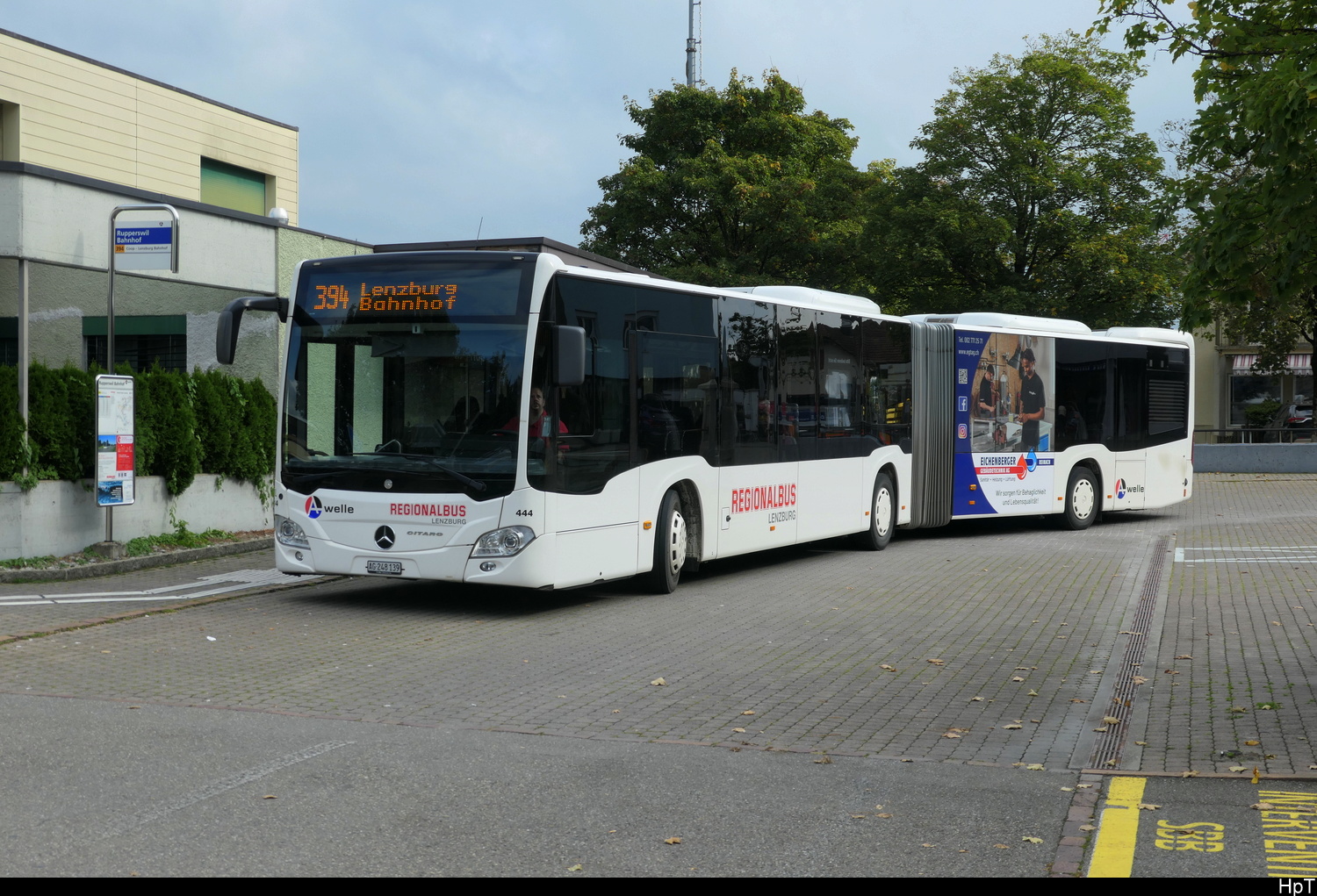 Regionalbus Lenzburg - Mercedes Citaro  Nr.444 bei der Haltestelle vor dem Bhf. Rupperswil am 01.10.2025