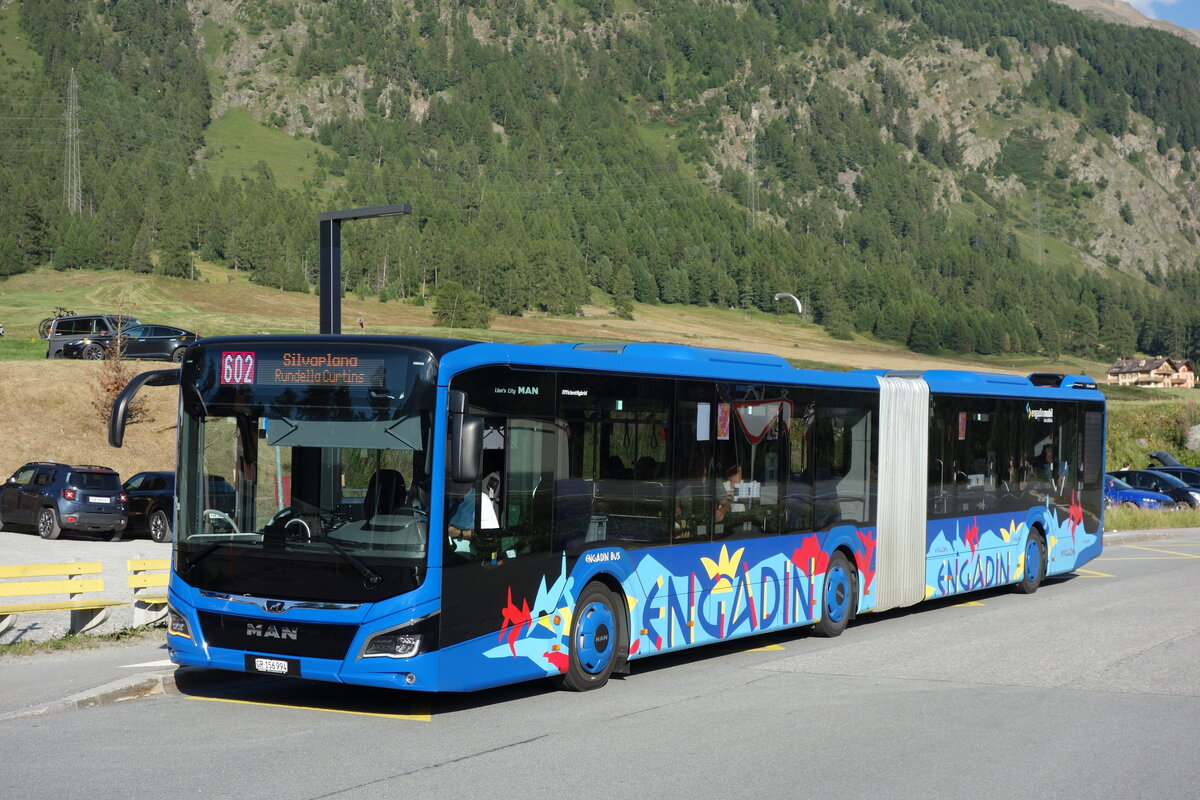 Engadin Bus, St.Moritz. MAN Lion's City 12E (GR 100'107) in Silvaplana, Rundella Curtins.