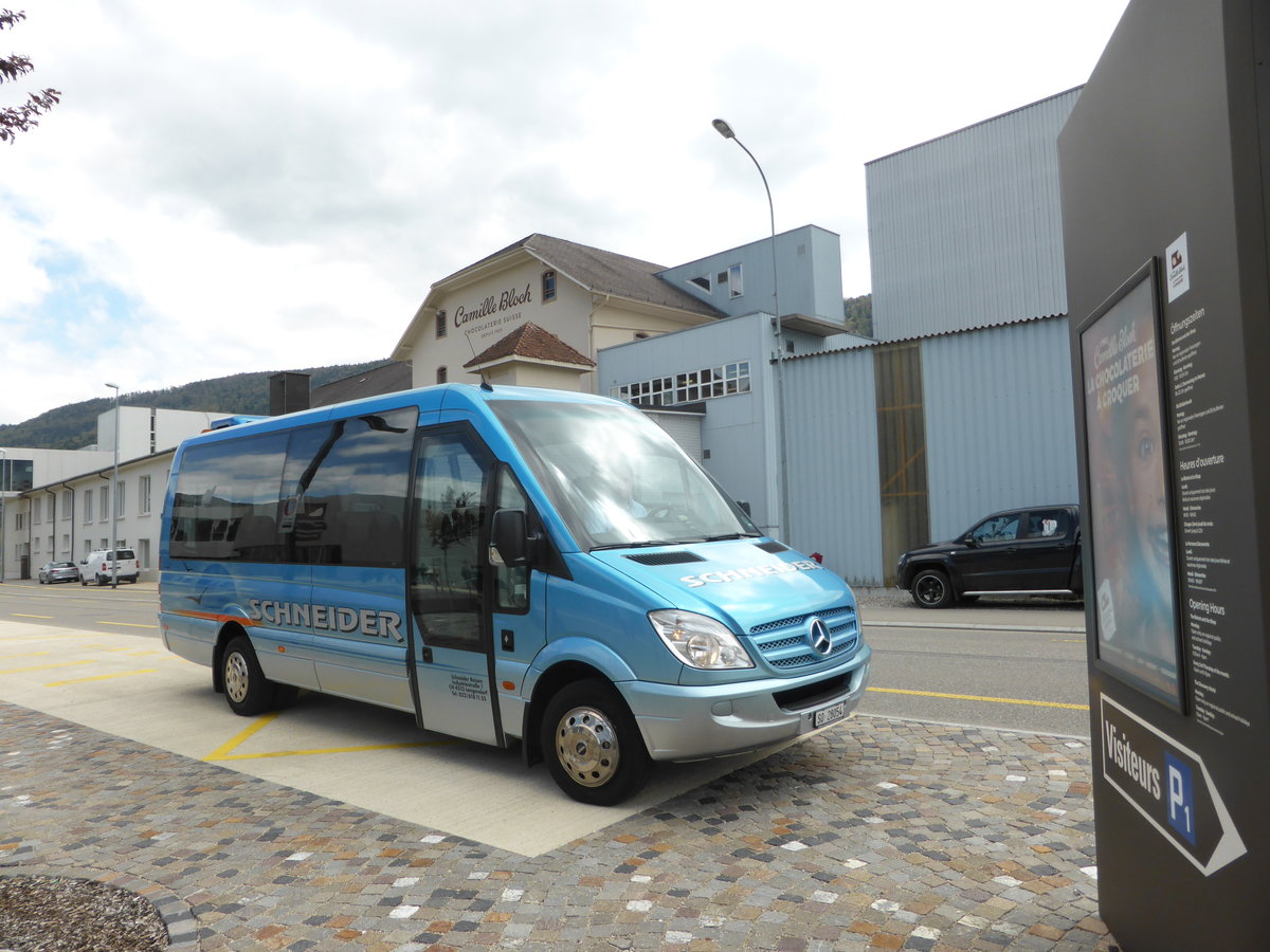 Mercedes-Benz Sprinter (SO 28054) in Courtelary bei  Chez Camille Bloch, la chocolaterie à croquer , Schneider Reisen und Transport AG, Langendorf, Aufgenommen am 15. Mai 2019