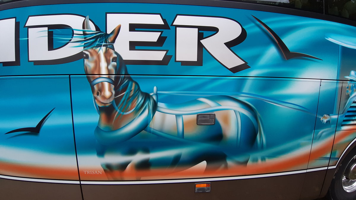 Setra 416 HDH (SO 20457) mit Jubiläumsfolierung Detailaufnahme von "Trisan", Schneider Reisen und Transport AG, Langendorf, Aufgenommen am 6. Oktober 2019