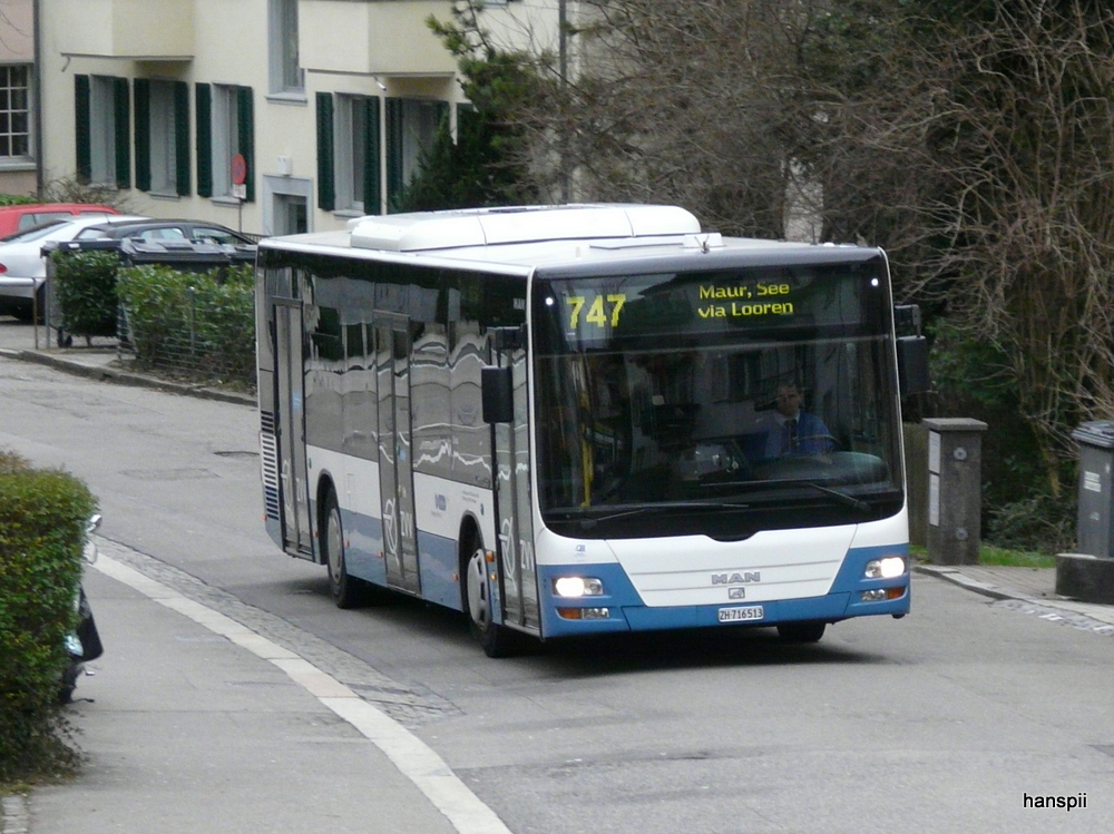 VBZ - MAN Lion`s City Nr.513 ZH 716513 unterwegs auf der Linie 747 in Zürich am 01.01.2013