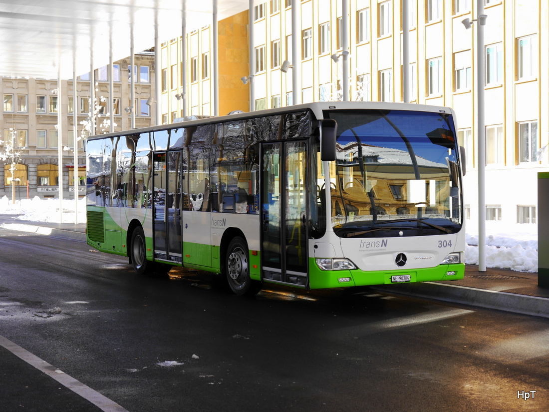 TransN - Mercedes Citaro  Nr.304  NE 90304 bei den Neuen Bushaltestellen vor dem Bahnhof in La Chaux de Fonds am 18.01.2015