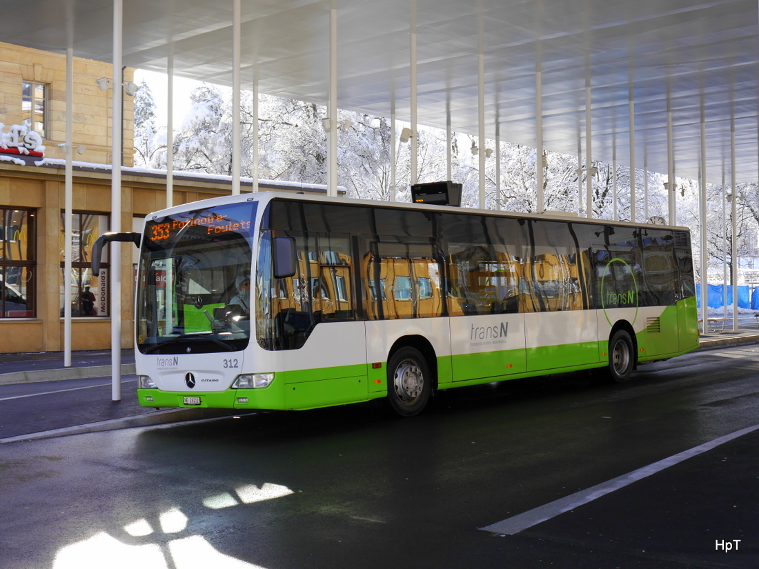 TransN - Mercedes Citaro  Nr.312  NE 26212 unterwegs auf der Linie 353 bei den Neuen Bushaltestellen vor dem Bahnhof in La Chaux de Fonds am 18.01.2015