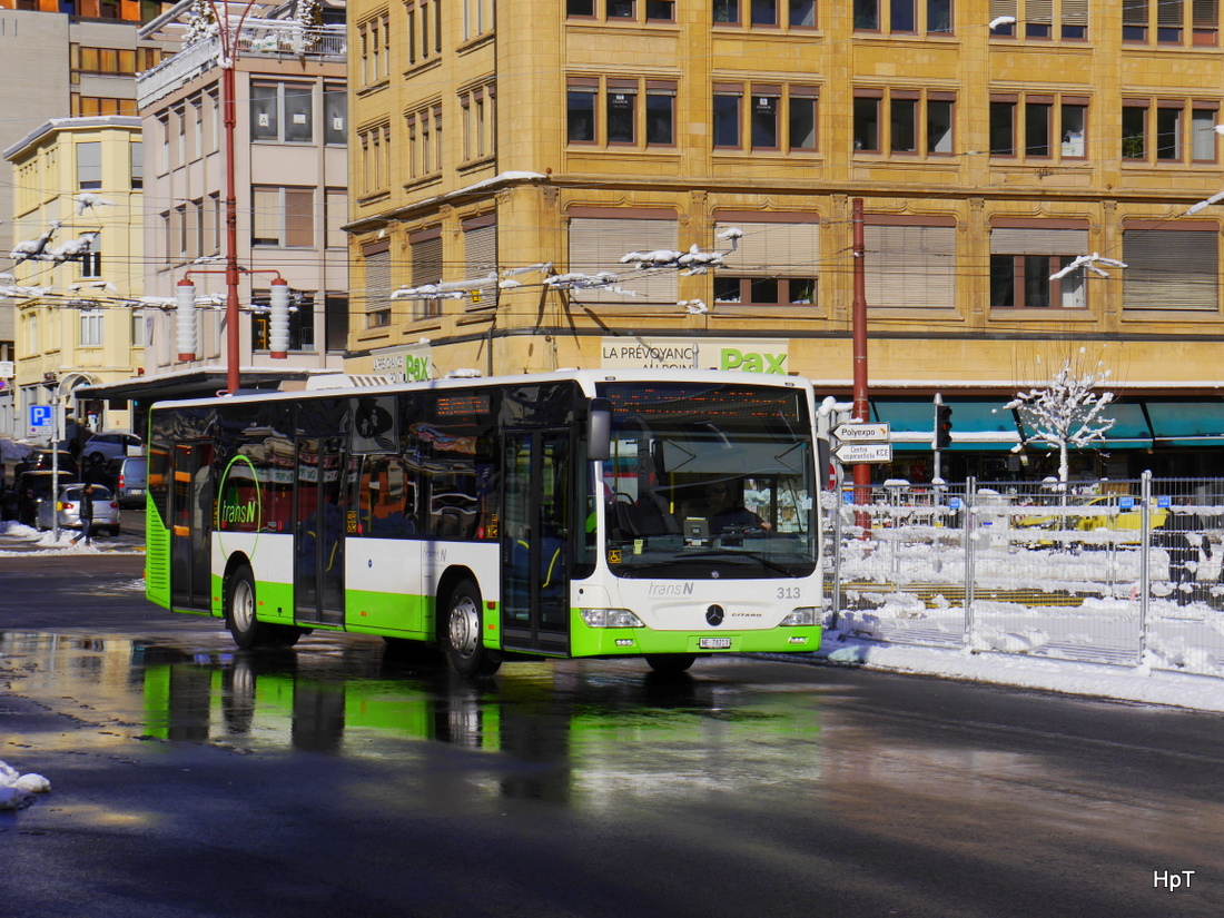 TransN - Mercedes Citaro  Nr.313  NE 78213 unterwegs vor dem Bahnhof in La Chaux de Fonds am 18.01.2015