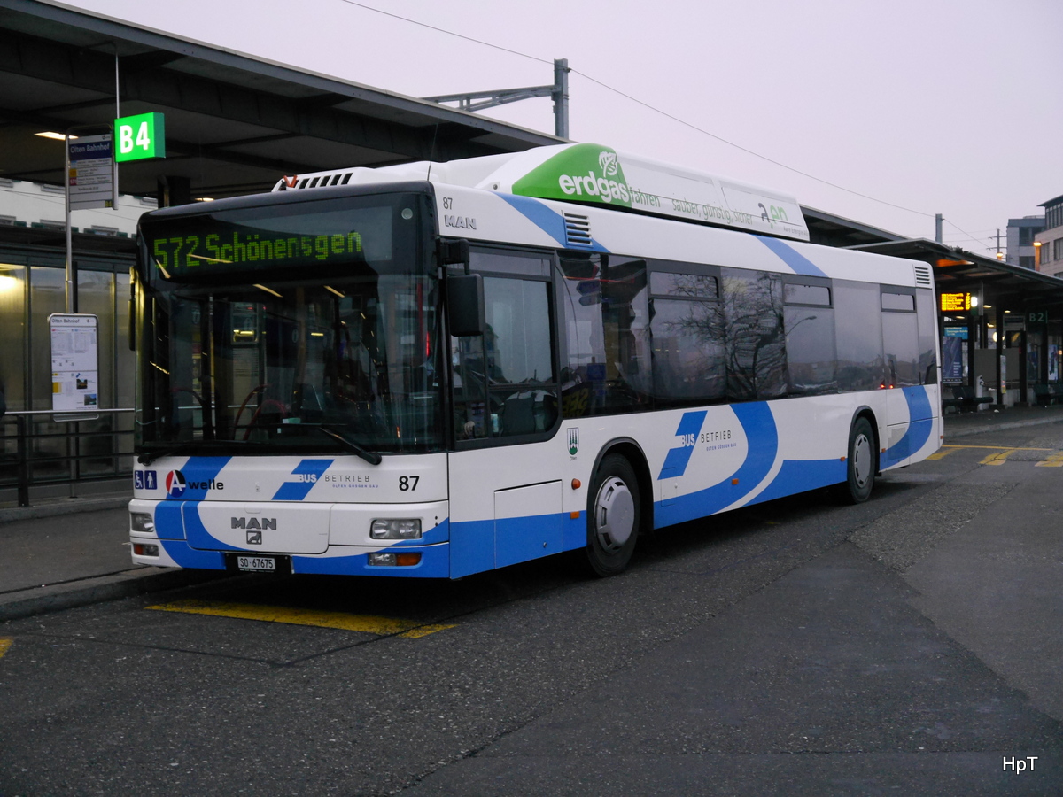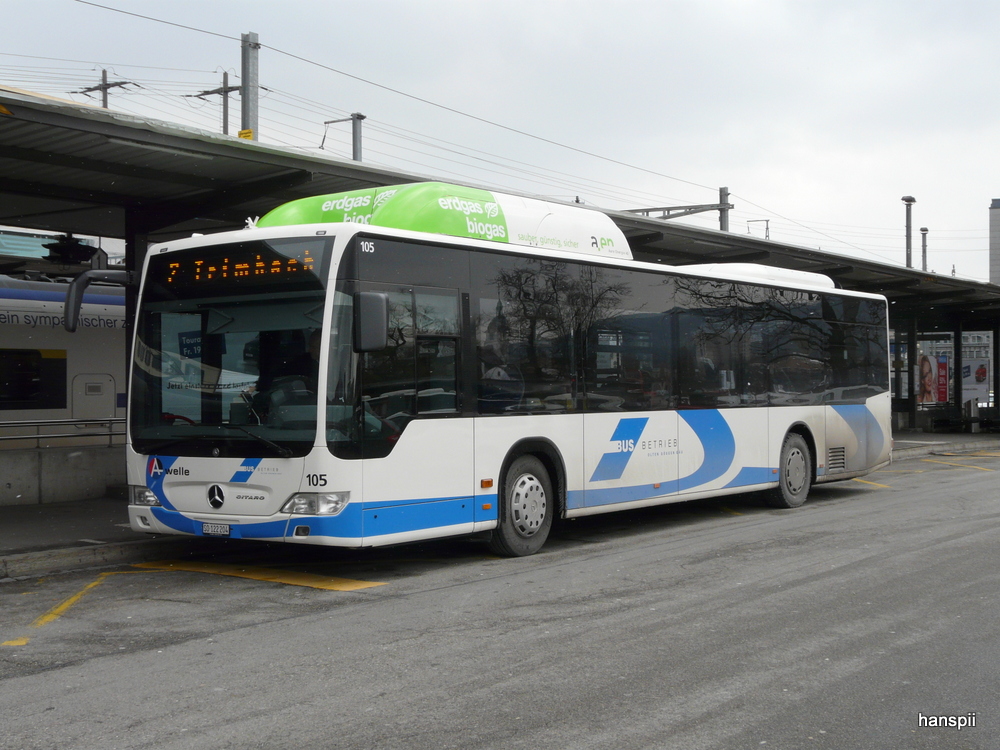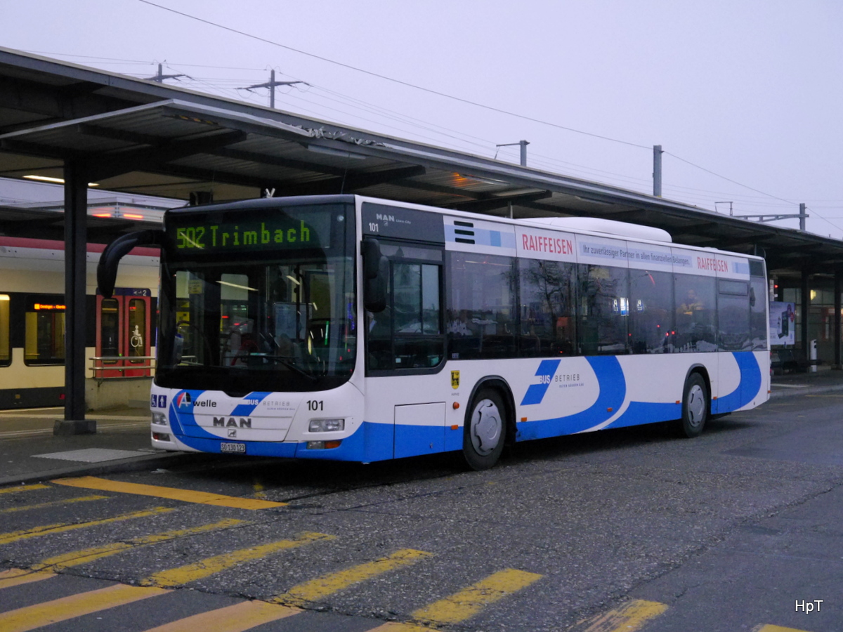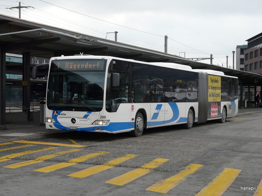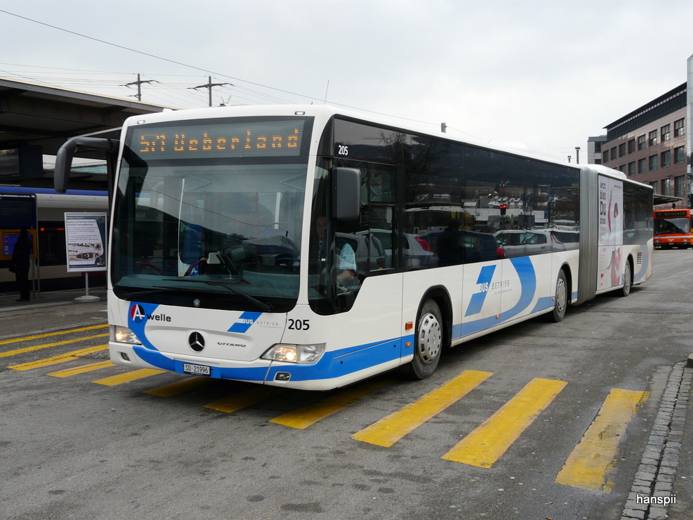 Mercedes Citaro C2 G Nr. 16 (2014) der BLT am 24. Januar 2015 in Olten am Bahnhof. An diesem Wochenende (und noch einem weiteren) fuhr die BLT einen Bahnersatz für die S9 aufgrund von Bauarbeiten. Citaro93