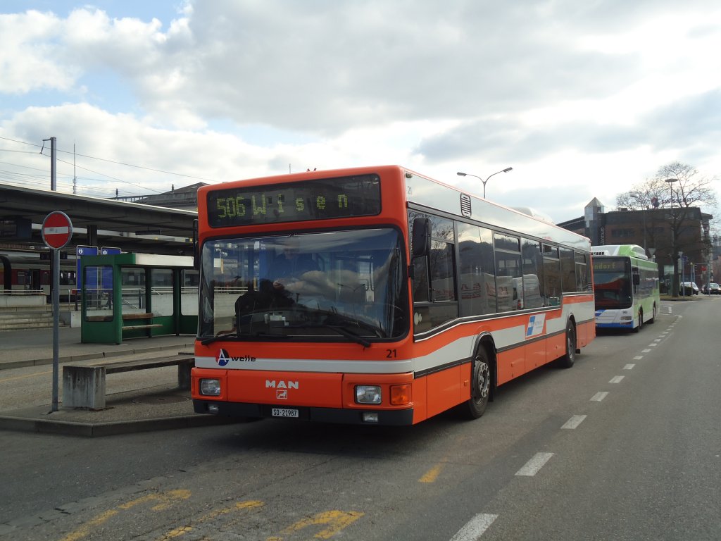 BOGG Wangen b.O. - Nr. 21/SO 21'987 - MAN (ex AGO Olten Nr. 21) am 6. März 2012 beim Bahnhof Olten