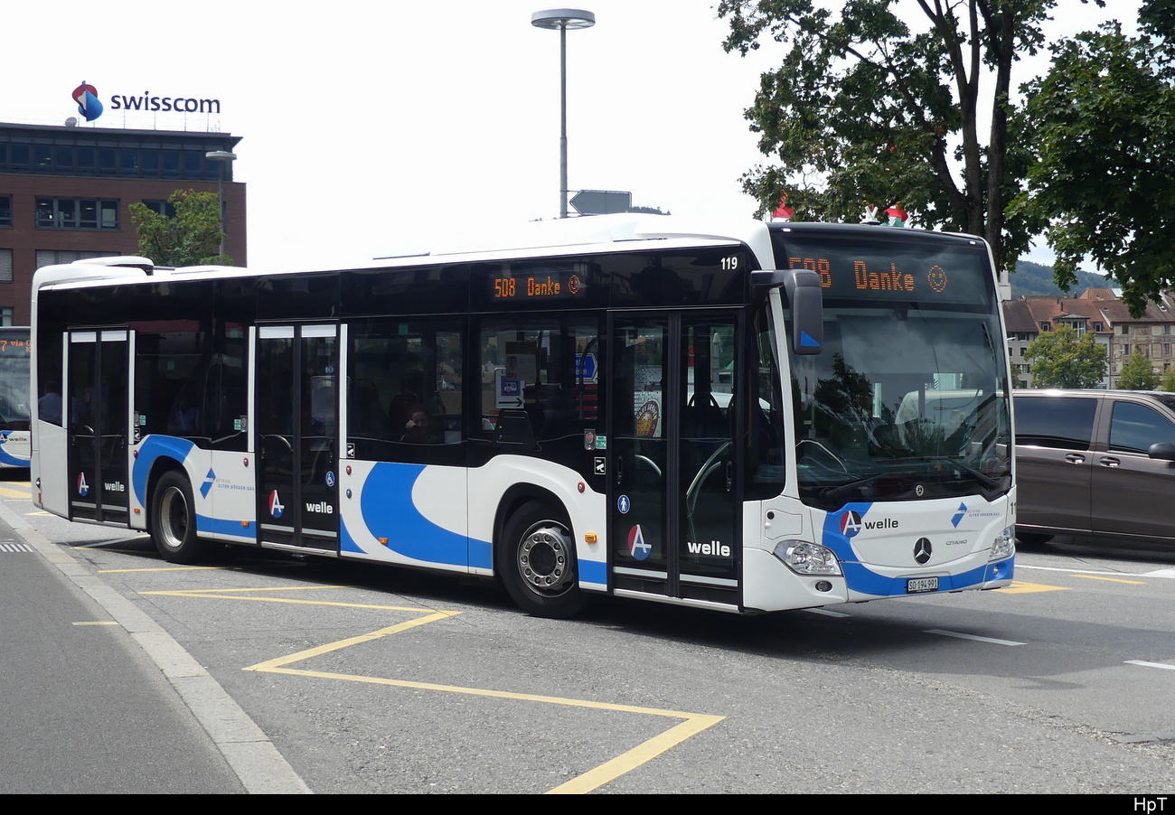 BOGG - Mercedes Citaro Nr.119  unterwegs auf der Linie 508 ( DANKE ) beim Bhf. Olten am 28.07.2023