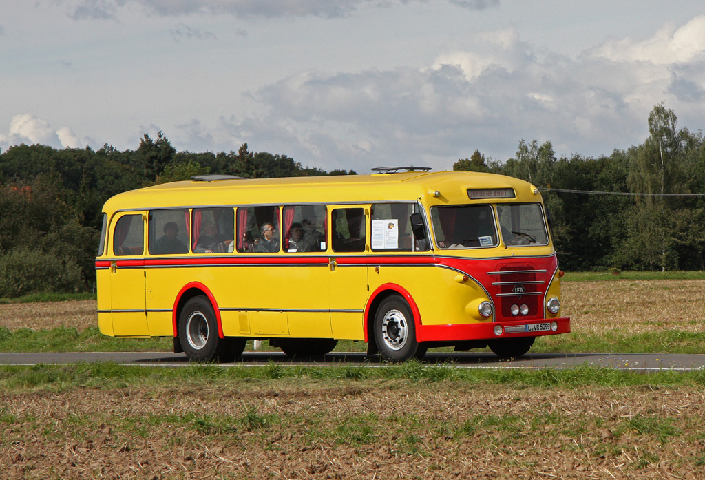 Dieser historische IFA-H6B der LeoBus Leipzig GmbH, mit seiner auffallend gelben Farbgebung, kam zum Jubiläum "100 Jahre Straßenbahn in Schkeuditz" am 18.09.2010 für Rundfahrten zum Einsatz.(zum Bild)