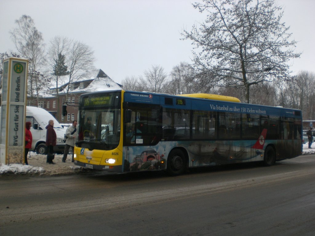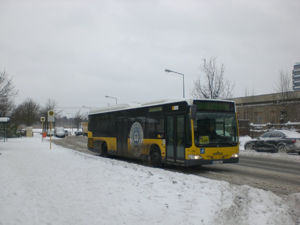 Da ich letzten Sonntag auch i.d. Nähe (Venusstr.) fuhr, sind mir die Winterbedingungen nur zu vertraut. Hinweisen möchte ich auf die Wagennummer (21er) und den blauen Umweltengel. Damit ist der 160er neben dem 240er eine der wenigen Linien in Berlin, auf dem die BVG ihre neueste Serienlieferung (Citaro LE) mit den neuen Fahrscheindruckern präsentiert.