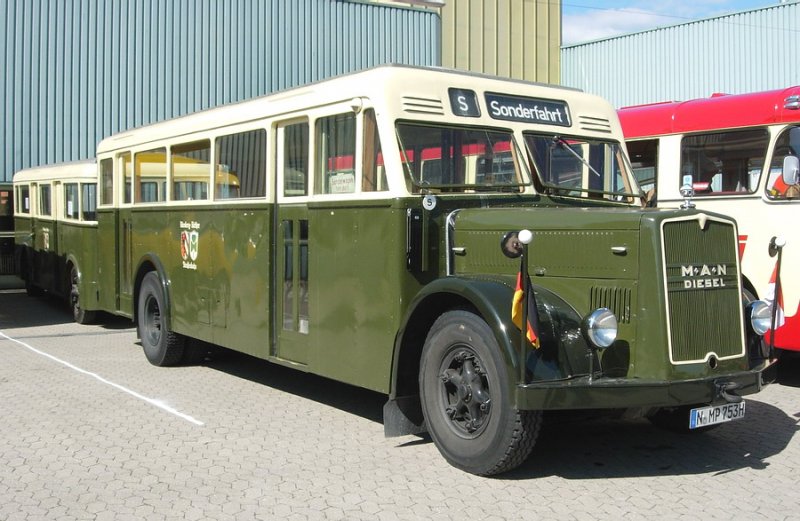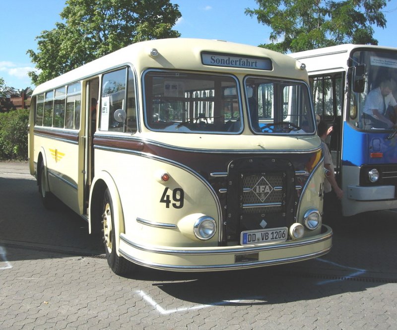 Hist. Bus mit Werbung Flammenbrot an der Hst. Monumentenhalle, Sonderverkehr September 2007