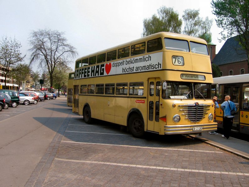 Büsing-Doppeldeckerbus. Sonderfahrten Mai 2006 als Linie 76E zum Platz der Luftbrücke gekennzeichnet in Marienfelde