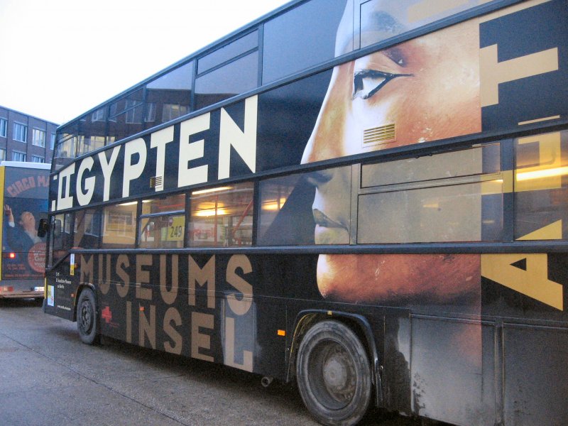 BVG-Bus mit Werbung für die Museumsinsel u. Ägypten, Bhst. Bahnhof Zoo, Herbst 2006