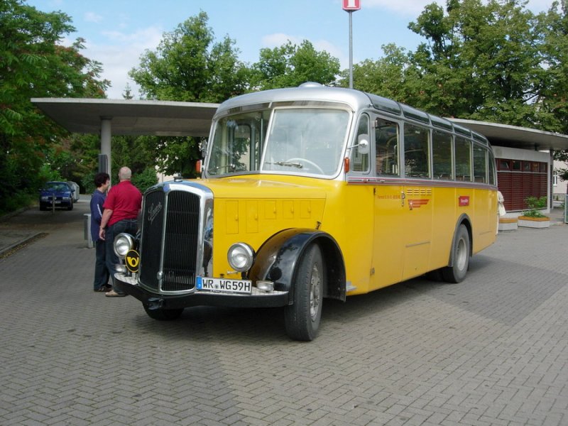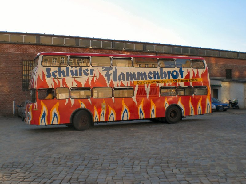 Hist. Bus mit Werbung Schlüter-Flammenbrot vor der Hst. Monumentenhalle, Sonderverkehr September 2007