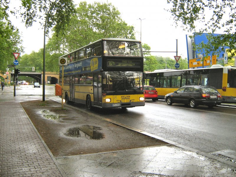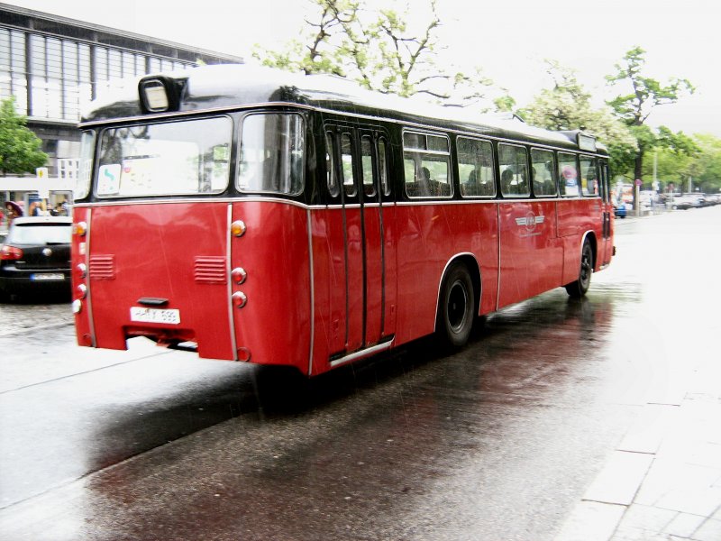 Hist. Büssing-Bus aus Hamburg im Einsatz bei den Sonderfahrten Bhf. Zoo - Spandau im Mai 2007, hier im strömenden Regen am Bhf. Zoo