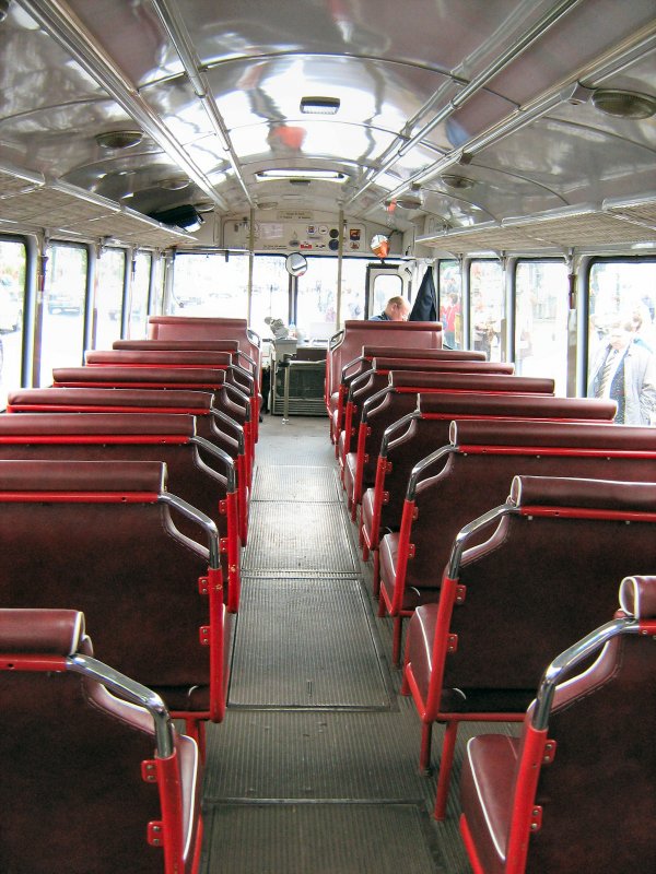 Innenaufnahme Büssing-Bus aus Hamburg. Vor der Rückfahrt zum Bahnhof Zoo in Spandau, noch ohne Fahrgäste. Aufnahme: Mai 2007