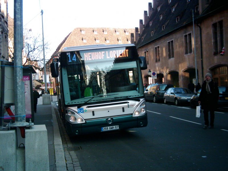 Irisbus Citélis 18 GNC, Wagen 311, Linie 14, Haltestelle "Ancienne Douane" (Altes Zollhaus), Strasbourg