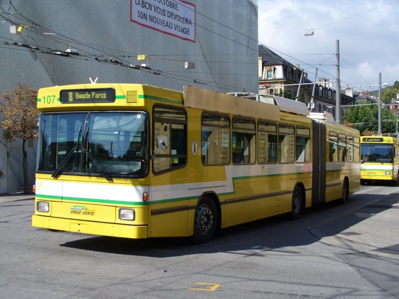 TN - NAW / Hess Trolleybus Nr.107 bei der Haltestelle Place Pury am 19.09.2007