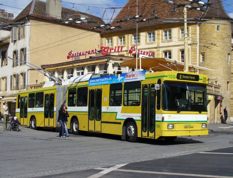 TN - NAW / Hess Trolleybus Nr.108 beim verlassen der Haltestelle Place Pury am 19.09.2007