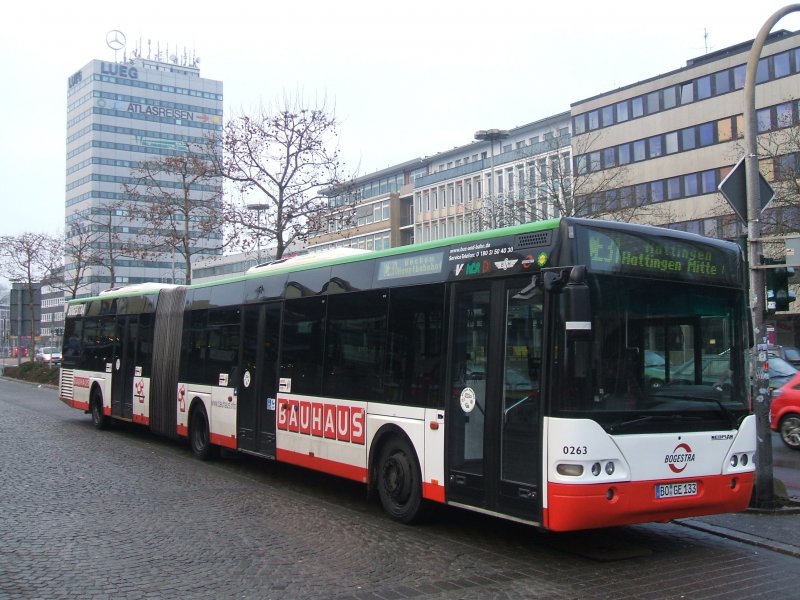 Bogestra Wagen 0263 ,Neoplan Gelenkbus ,Werbeträger von BAUHAUS,