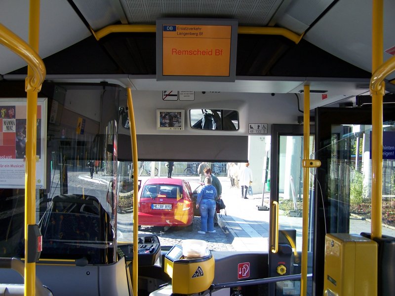 "Bitte nach hinten durchgehen" steht an der Fahrerkabine des P:AV 946 MB Citaro der VIP.