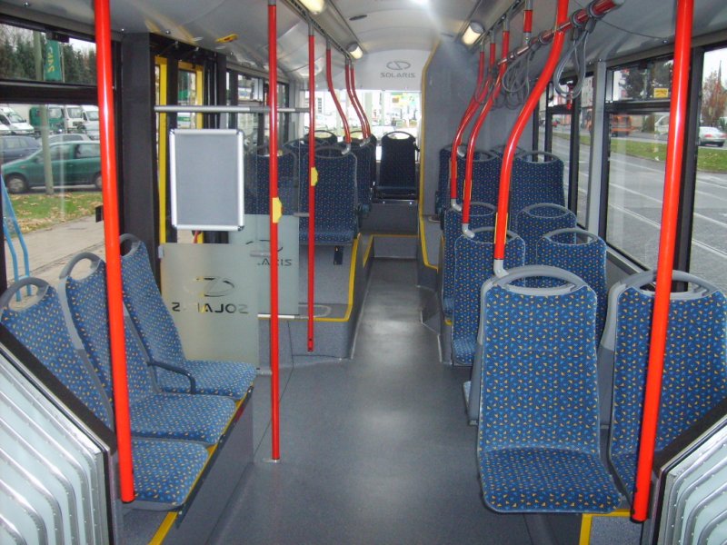 Die Sitzreihe eines Solaris Urbino 18 der HVG in Potsdam. Aufgenommen am 27.12.2007