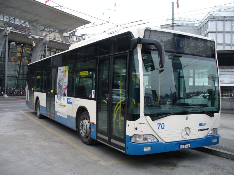 VBL - Der Mercedes Citaro Bus Nr.70 LU 15728 bei der Haltestelle vor dem Bahnhof Luzern am 18.11.2007