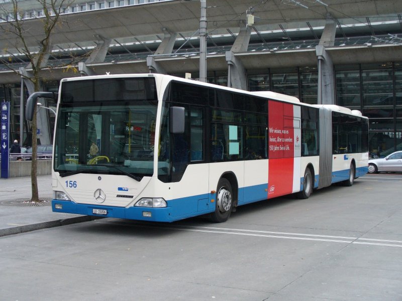 VBL - Der Mercedes Citaro Gelenk-Bus Nr.156 LU 15056 bei der Haltestelle vor dem Bahnhof Luzern am 18.11.2007