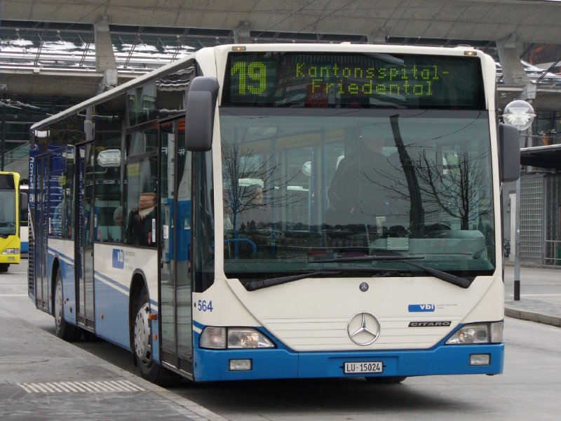 VBL - Der Mercedes Citaro Bus Nr.564 LU 15024 bei der Haltestelle vor dem Bahnhof Luzern am 18.11.2007