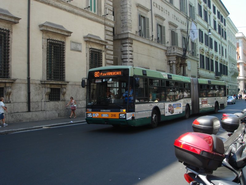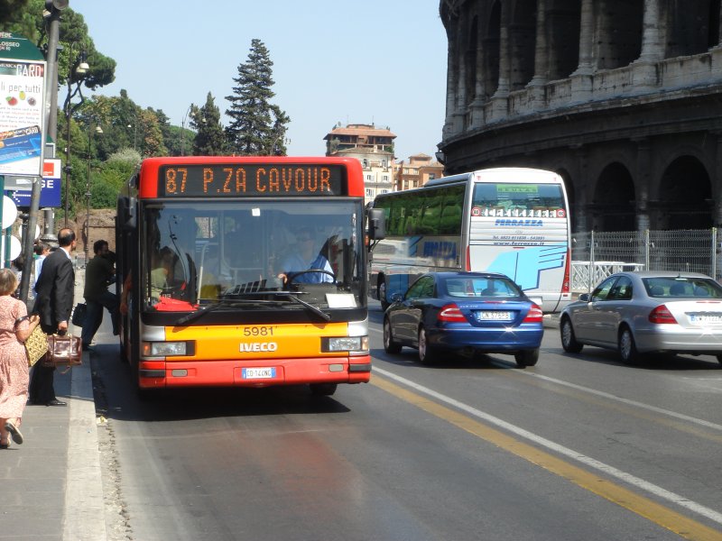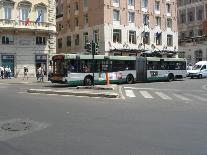 Ein Bus in der nähe der Innenstadt von Rom. Üblicherweise fahren in der Innenstadt von Rom kleine E-Busse.