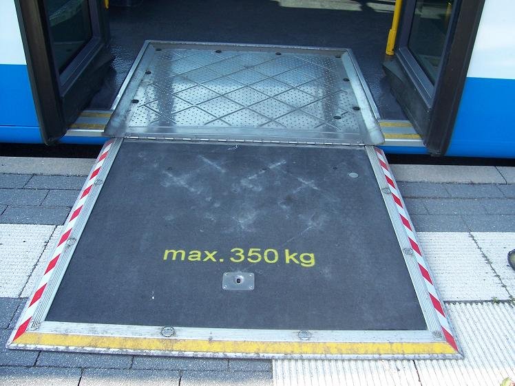 Die Rollstuhlrampe im Eingeklappten Zustand eines Mercedes Benz Citaro 530 G.