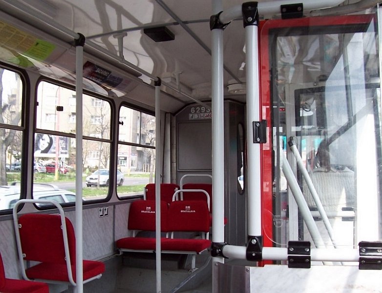 Inneneinrichtung des Skoda-Obuses Nr. 6293 der Bratislavaer Verkehrsbetriebe, aufgenommen am 18.03.2007.