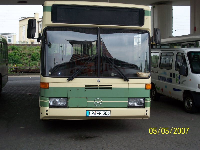 MB O405 steht unweit des Ludwigshafener HBF. Der Bus gehört Fröhlich Reisen