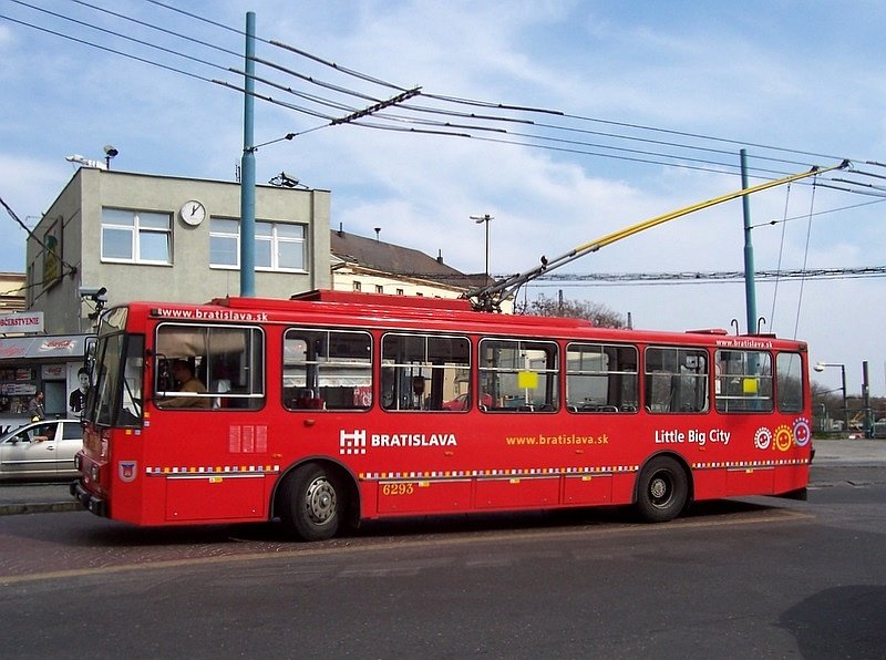 Skoda-Obus Nr. 6293 der Linie 210 von Bratislava Hlavna Stanica (Hauptbahnhof) zum Stanica Mlynske Nivy (Zentralen Busbahnhof) am 18.03.2007 am Hauptbahnhof.