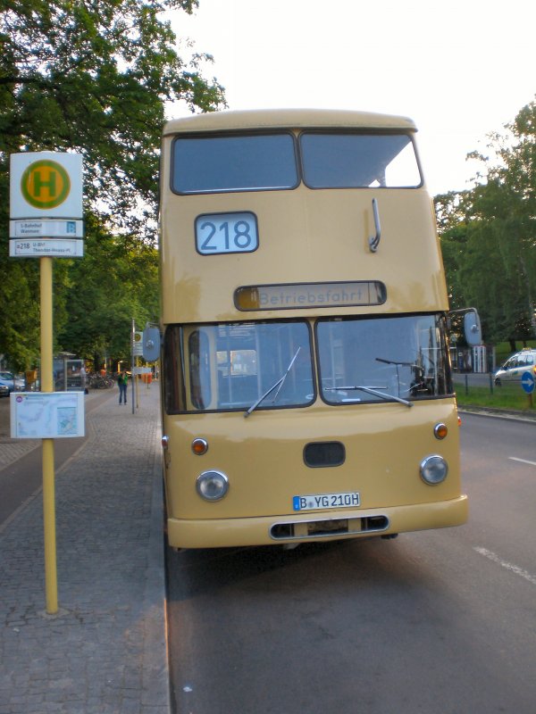 Hist. Doppeldeckerbus im Linienverkehr der BVG als Linie 218, hier am Bahnhof Wannsee, Herbst 2007