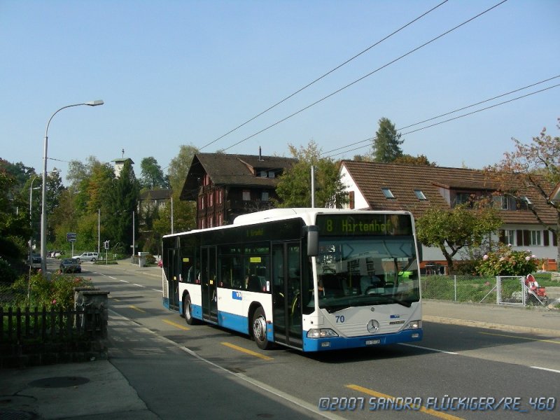 Am 12. Oktober 2007 war der MB Citaro Nr. 70 auf dem 8er als Einsatzkurs unterwegs. Hier zwischen Wartegg und Schönbühl.