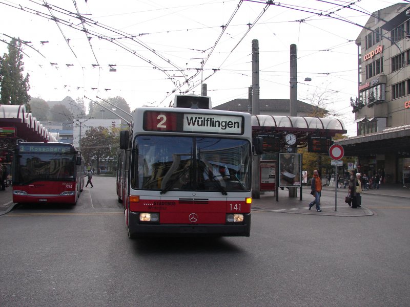 Das ist das schönste in der Schweiz. Viele Städte haben O-Busse. Auch Winterthur, hier am Bahnhof Winterthur mit Linie 2 nach Wülfingen.