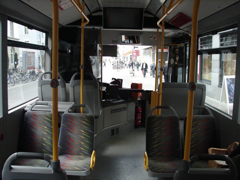 Die Inneneinrichtung eines MB Citaro im Stadtbus von Winterthur. Aufgenommen am 10.10.2007
