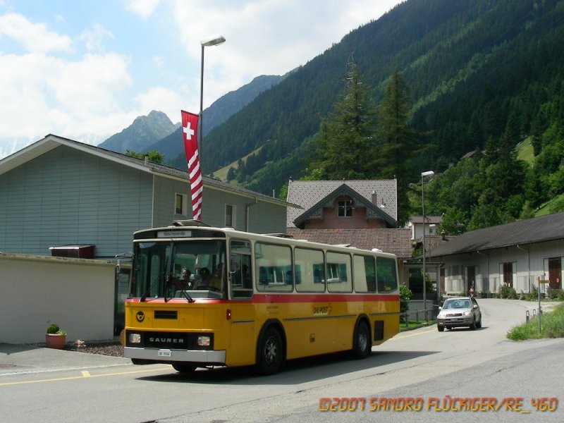 Ein Saurer/R&J am 17.7.2007 unterwegs durch Göschenen, von der Göscheneralp her.