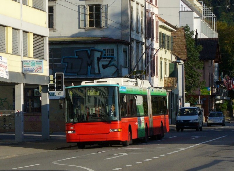 Gelenk Trolleybus der VB Biel.. Bus Nr 88 Eingeteilt auf der Linie 4 nach Nidau .. Foto vom 18.08.2007