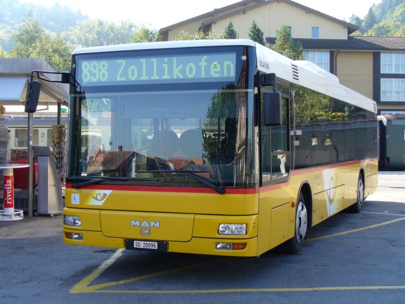 Post - MAN Regio-Bus SO 20096 im Bahnhof von Büren an der Aare Bereit zur abfahrt nach Zollikofen am 21.09.2007