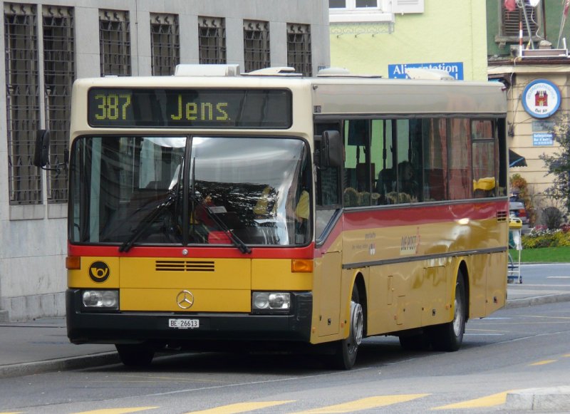 Post - Mercedes Regio-Bus BE 26613 bei der Postautohaltestelle beim Bahnhof von Biel zur Abfahrt bereit nach Jens am 19.10.2007