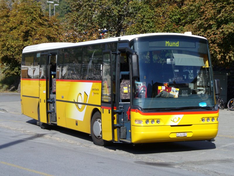Post - Neoplan Post-Regio-Bus nach Mund VS 243877 bei der Postautohaltestelle vor dem Bahnhof in Brig am 20.09.2007